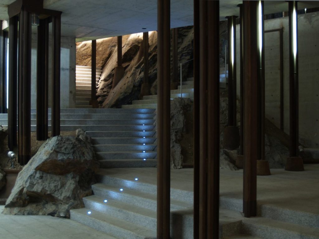 A standout feature of the restoration is the innovative use of weathered steel columns, which support subtly vaulted concrete ceilings. This material choice is not only visually striking but also practical, adding structural strength while harmonizing with the castle’s historical aesthetic. The weathered steel, with its warm, earthy tones, complements the stone walls and other medieval elements, creating a seamless dialogue between the old and the new. The subtle concrete vaults, in turn, provide a modern interpretation of traditional architectural forms, enhancing the sense of space and light within the castle’s interiors.