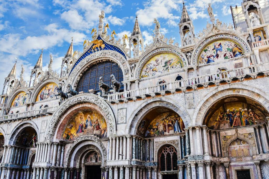 What is known is that they once adorned the Hippodrome of Constantinople before being taken by Venetian forces during the Fourth Crusade in 1204. The horses were brought back to Venice as spoils of war and placed proudly on the façade of the basilica. They became a symbol of Venice’s power and influence during its height as a maritime republic. However, the horses’ journey didn’t end there. In 1797, Napoleon took them to Paris after his conquest of Venice, where they remained until 1815 when they were returned to the city. Their adventures over centuries have left them slightly battered but rich with stories. To preserve these historic artefacts, the original horses were brought inside the basilica’s museum in the 1980s, and replicas now adorn the exterior facade.